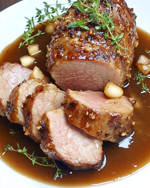 Serve the pork medallions drizzled with the apple cider reduction, garnished with additional fresh herbs if desired.