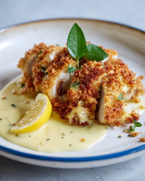 Serve the chicken with a dollop of lemon sauce and garnish with fresh parsley.